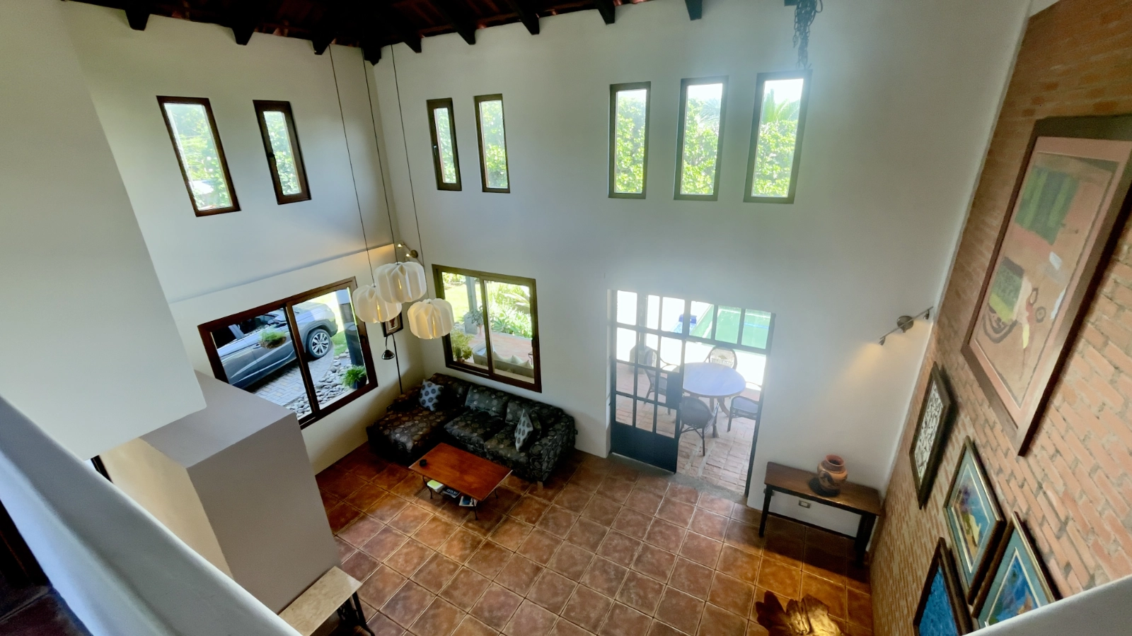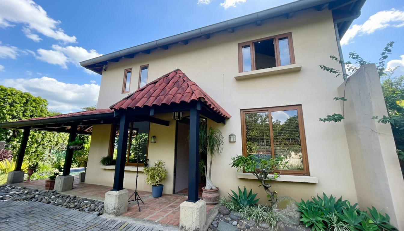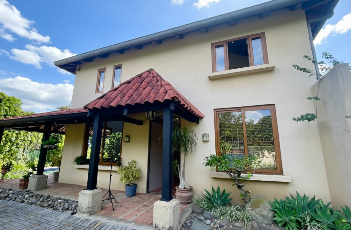 Discover a sanctuary where architectural pedigree meets tropical serenity in the heart of Brasil de Santa Ana, Costa Rica. Situated on a sprawling 1,500 m² lot, this distinctive residence is more than just a home; it is a retreat from the bustling world. Designed by the renowned architect Peter Vanseolw and Grupo 3, the property masterfully blends indoor sophistication with the lush beauty of the Central Valley. As you step through the custom wrought-iron doors, you are greeted by a breathtaking double-height living room with soaring 7-meter ceilings, exposed brick accents, and rich solid wood interiors that evoke a sense of timeless elegance.